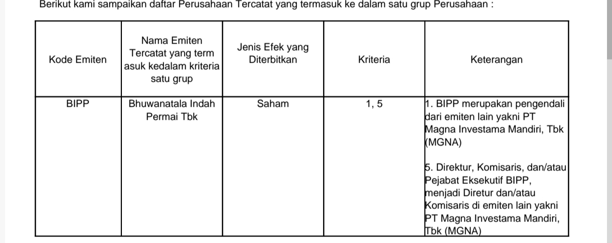 PT. Magna Investama Mandiri Tbk (MGNA) bergerak dibidang jasa, perdagangan dan investasi. Perusahaan memiliki anak perusahaan yaitu PT. Padi Unggul Indonesia, adalah perusahaan agribisnis swasta di Indonesia.