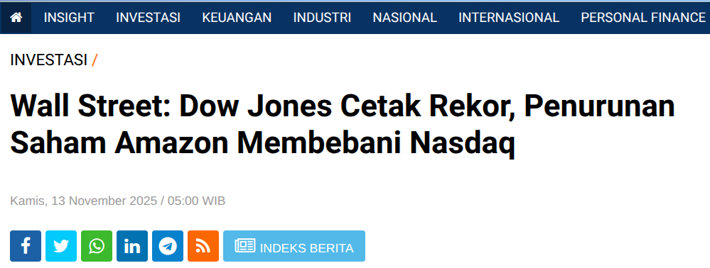 Pagi, traders! Ada angin segar dari AS. Wall Street ditutup positif semalam (12/11) dengan Dow Jones mencetak rekor baru. Penyebabnya adalah optimisme pasar bahwa government shutdown di AS akan segera berakhir. Ini sentimen 'risk-on' yang bagus, dan analis memproyeksikan IHSG hari ini (13/11) lanjut bullish. Efeknya? Aset 'aman' seperti emas justru terkoreksi pagi ini, setelah kemarin sempat diprediksi lanjut naik. Jadi, perhatikan saham-saham yang sensitif dengan sentimen global. Sementara itu, dari BEI, ada pengumuman penting: suspensi saham $SSTM dan $MGNA resmi dibuka pagi ini.