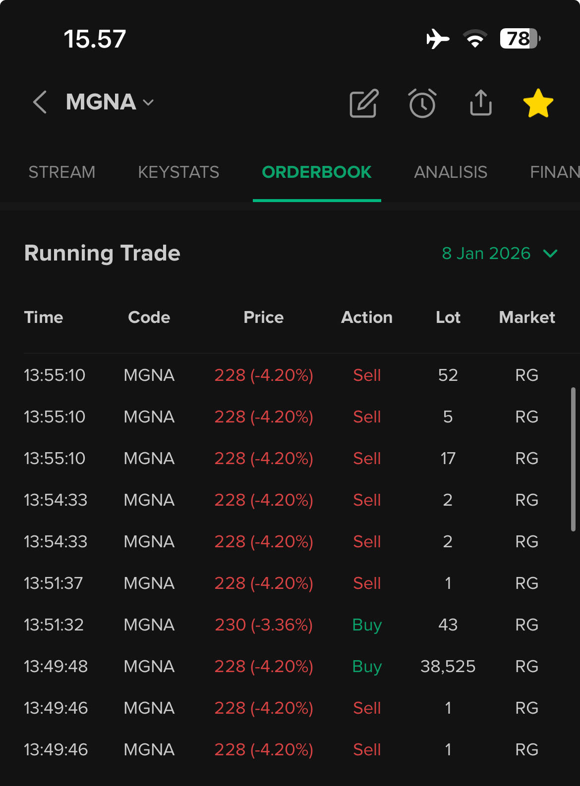 @faturfrp gak perlu liat broksum yg gituan mah udah tau. mana ada orang haka saham nggak liquid segitu banyak tapi harga nggak berubah, itu mestinya Ara sekali haka segitu, kalau harga gak kemana-mana ya jelas dia haka barang sendiri, bisa pakai akun lain bisa pakai akun yg sama...$MGNA