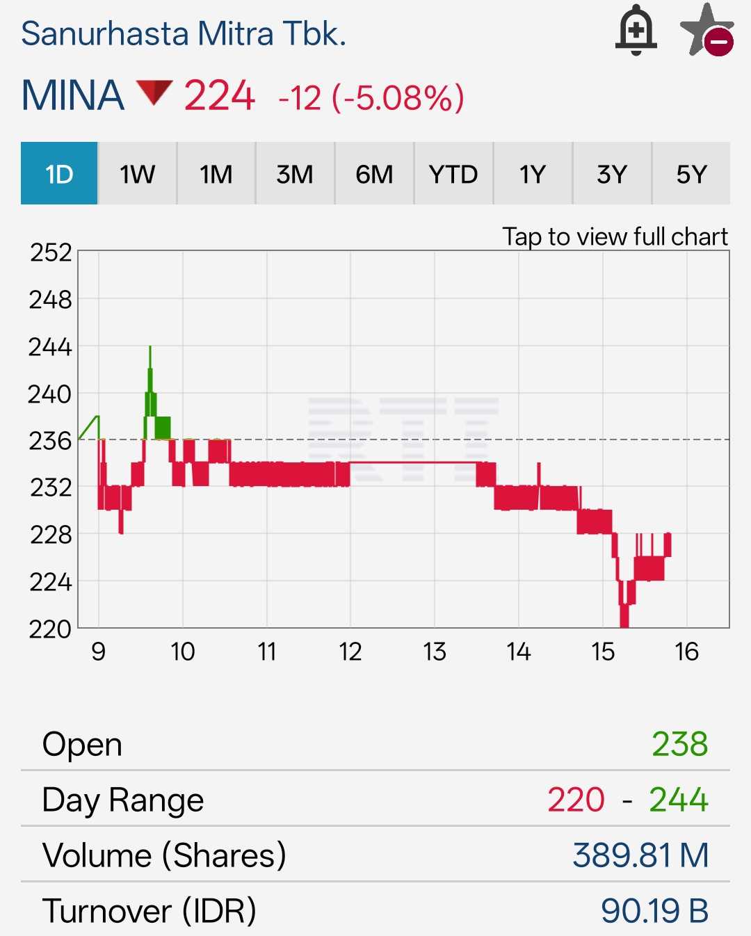 $MINA skrg punya support dikisaran 218 ya, pantau angka ini, selama MINA Kedepannya tidak breakdown kebawah area support ini, secara view kedepannya MINA ini mnrtku masih akan bagus