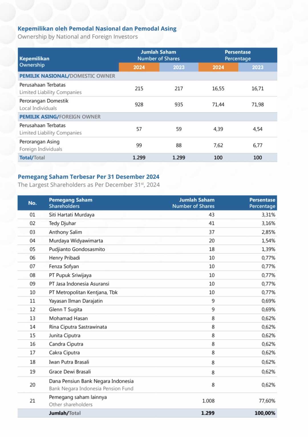 Selain MKPI ada juga perusahaan relasi-nya yang juga berstatus perusahaan "Tbk" tapi belum listing di Bursa, semoga kedepan segera di listing-kan, uniknya 78,75% sahamnya dimiliki oleh perorangan, anyone knows perusahaannya apa ?