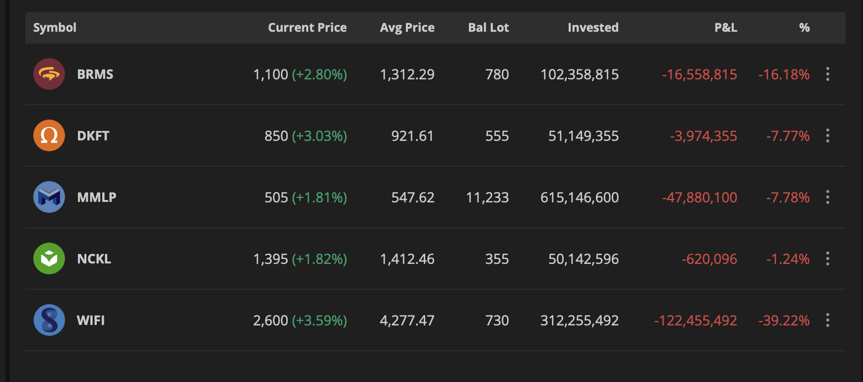 Yuk tetap semangat dan terus berjuang.. Alhamdulillah market udah rebound. Untung kemarin gak panik dan CL, sempet FL sekitar 300 juta sekarang FL tinggal 190 juta.. Penyesalan terbesar cuma karena 2 hari kemarin pas gada amunisi sehingga gak bisa serok bawah $MMLP $WIFI $BRMS