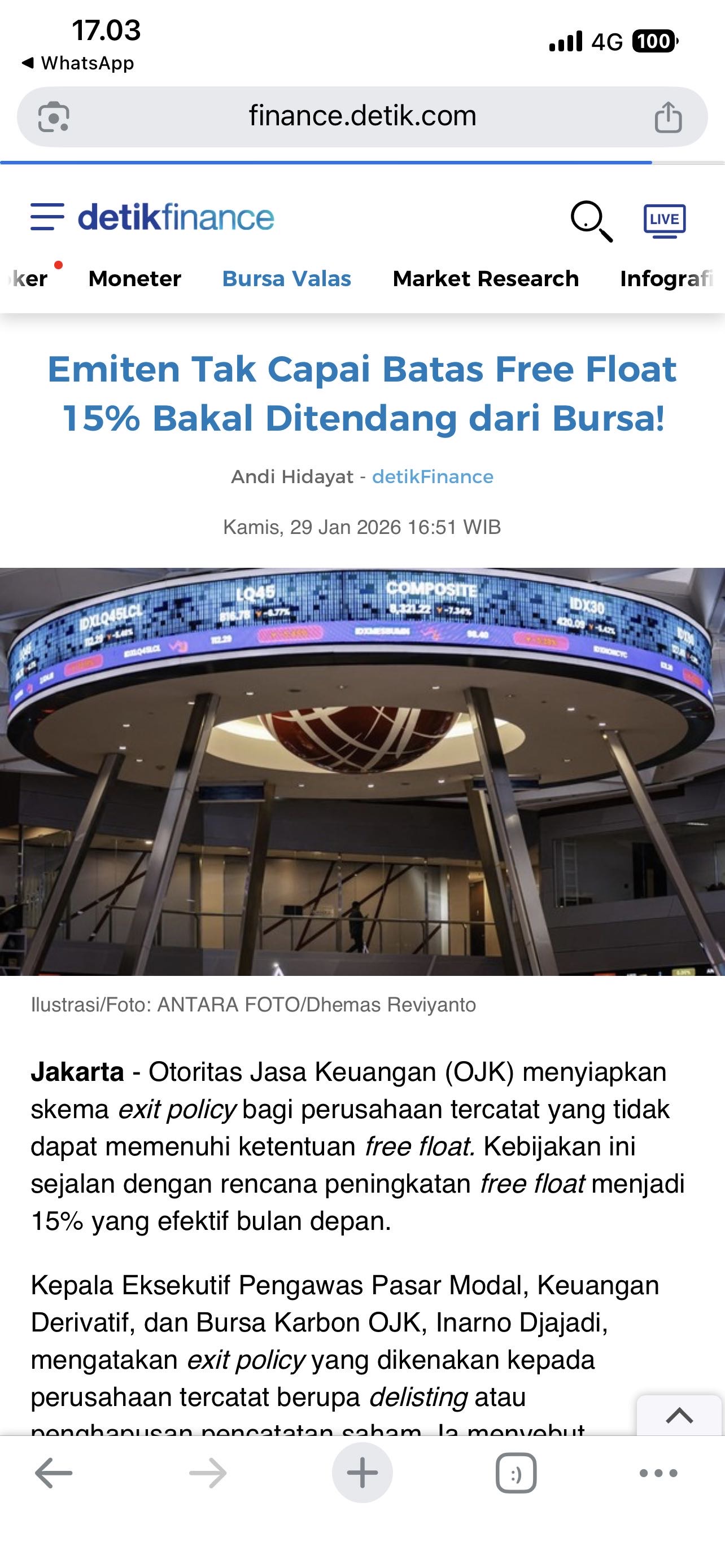 dalam waktu dekat free float ditetapkan minimum 15%.