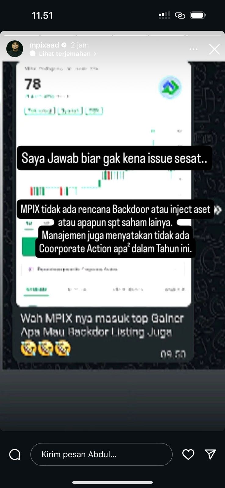 $MPIX cie bandar nya niat amat sampai bikin isu backdoor gini, sampai owner nya klarifikasi di ig story