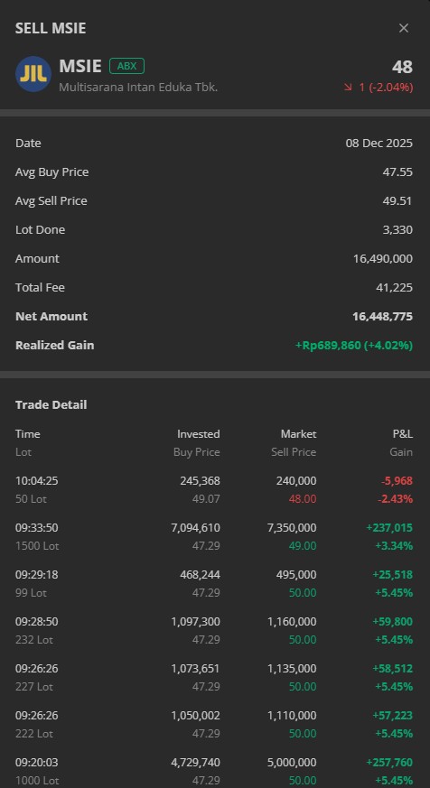PT Multisarana Intan Eduka merupakan perusahaan yang bergerak di bidang real estat dan aktivitas penyewaan dan sewa guna usaha tanpa hak opsi, ketenagakerjaan, agen perjalanan dan penunjang usaha lainnya. Perseroan didirikan pada tahun 2011 dan berdomisili di Jalan Kedung Baruk 112-114, RT 003 RW 003, Kota Surabaya, Provinsi Jawa Timur. Kegiatan utama Perseroan saat ini adalah menyewakan 2 properti yang berada di Jl Pattimura, Plaza Segi 8, Surabaya kepada Yayasan Intan Eduka yang mengelola IPH School, sebuah sekolah swasta bertaraf internasional di Surabaya.
