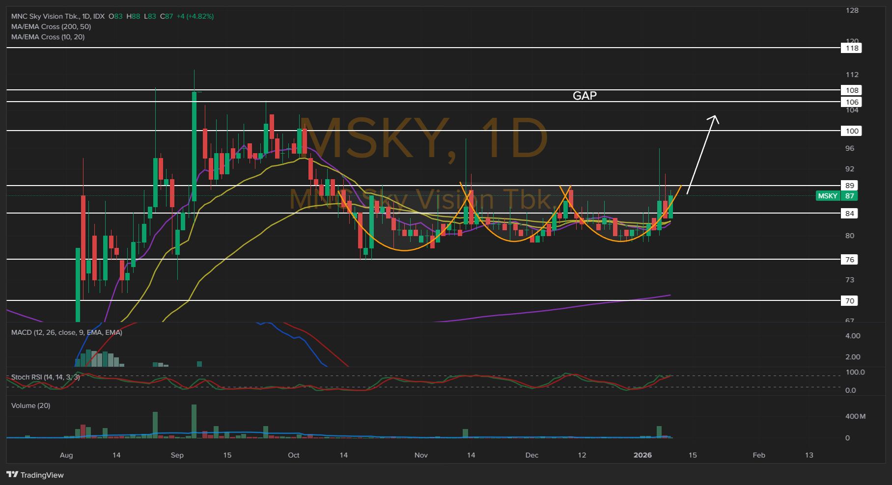 @Bintang3605 $MSKY ada potensi triple BOTTOM BREAK 89 Up To 100-110. Broksum lumayan oke.