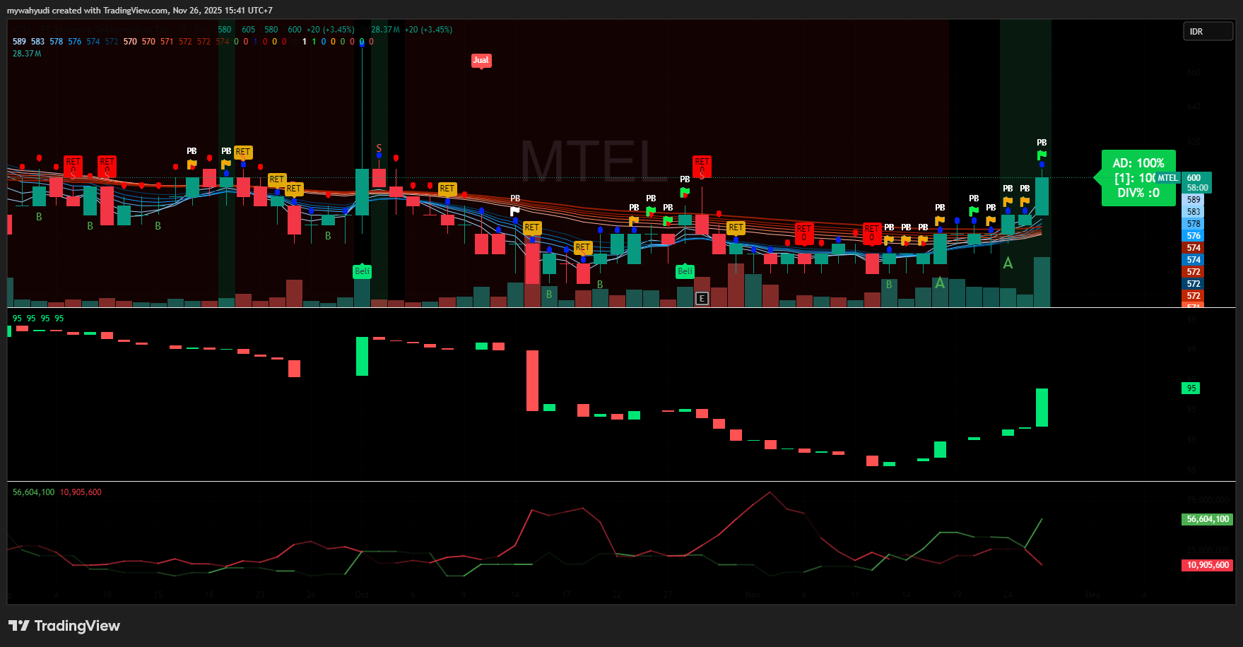 🔼 $MTEL gap up ke 580 (+15 / +2.65%) dari 565