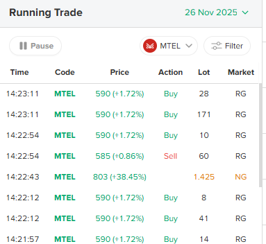 🔼 $MTEL gap up ke 585 (+20 / +3.54%) dari 565