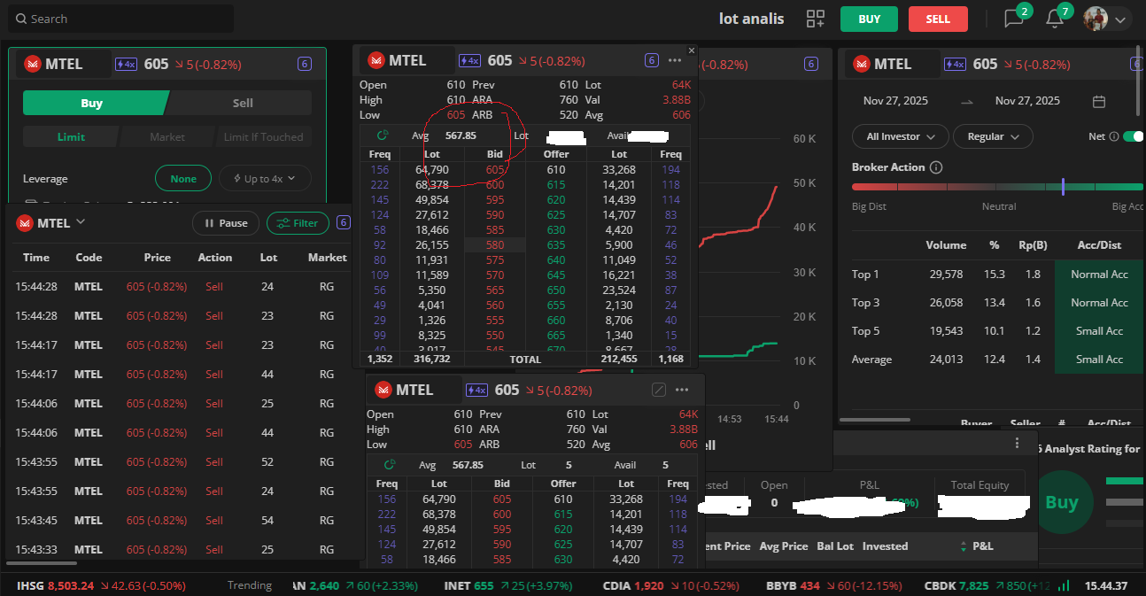 🔼 $MTEL gap up ke 610 (+10 / +1.67%) dari 600