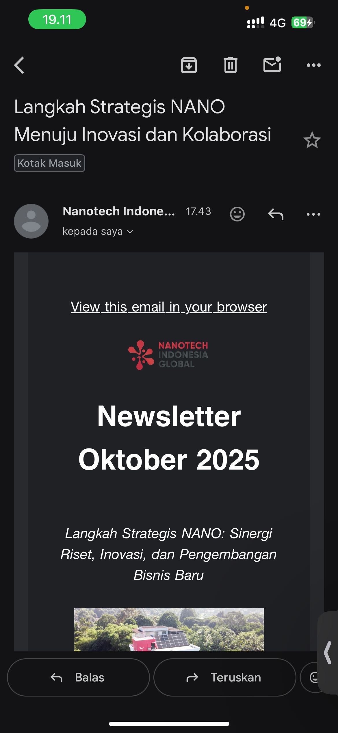 PT Nanotech Indonesia Global Tbk (NANO) adalah suatu perusahaan terbatas yang berdiri sejak tahun 2019 dan bergerak di bidang jasa layanan teknologi riset dan pengembangan, rekayasa material dan nanoteknologi. Sejak tahun 2019, bisnis NANO terus menerus mengalami pertumbuhan, dimana pada saat ini, NANO telah memiliki layanan riset dan pengembangan (R&D services) dan 3 layanan lainnya untuk tahap implementasinya, dimana dalam tahap impelementasi, NANO memiliki 5 Strategic Business Unit (SBU) yang fokus untuk mencari solusi untuk pelanggan sesuai dengan kebutuhan pelanggan di bidangnya masing-masing. Selain itu, NANO juga memil... Read More