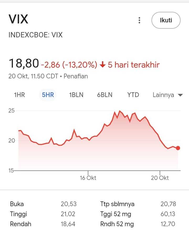 ✅ Cboe VIX Volatility Index juga sudah balik turun ke bawah 20.