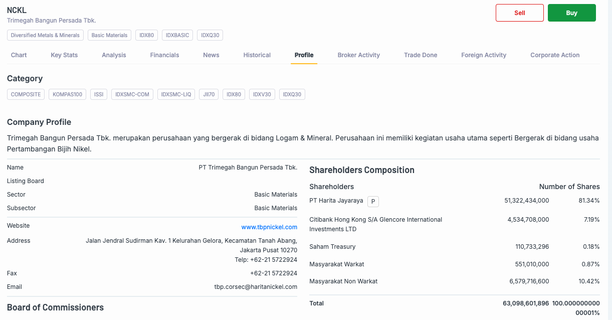 Perseroan adalah perusahaan nikel murni dengan kemampuan hulu dan hilir dengan pengalaman operasional lebih dari 10 tahun di Pulau Obi, Indonesia. Menurut AME Mineral Economics Pty Ltd ('AME'), berdasarkan ekspektasi produksi volume nikel tambang Perseroan pada tahun 2022, Perseroan diharapkan menjadi emiten produsen nikel murni terbesar di Indonesia dibandingkan perusahaan tambang nikel tercatat lainnya di Indonesia yang merupakan perusahaan tambang terdiversifikasi yang juga memproduksi komoditas lainnya. Fokus Perseroan adalah menjadi perusahaan pertambangan dan pengolahan nikel yang terintegrasi. Kegiatan operasi Perseroan y... Read More