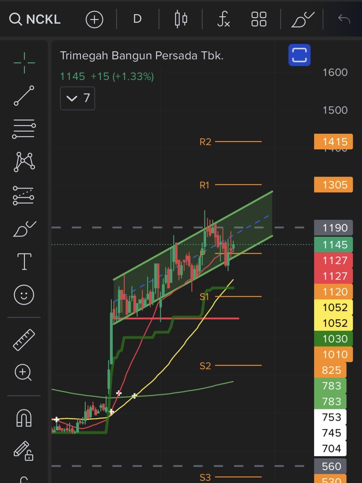 Posisi $NCKL terpantau sedang uptrend ya guys karna ma 200 berada di bawah candle.