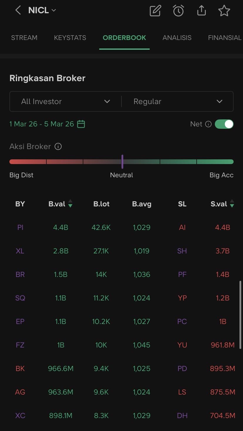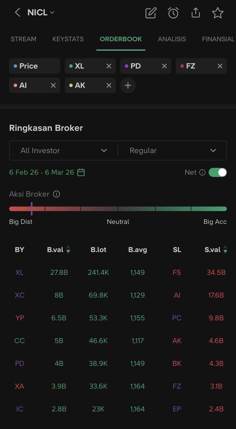 $NICL dari 1 bulan lalu bisa dilihat bahwa XL terus beli, banyak yg bilang XL itu sekuritas ritel jadi ini ritel yg beli ini saham, saya sih gayakin wwkkwk, mumpung harganya udh dibawah avg bandar hold kerasπ€π€