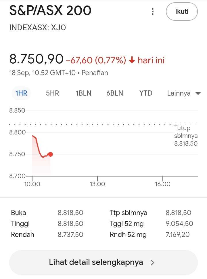 ➖ Bursa Australia $ASX melemah cukup signifikan pagi ini setelah keputusan Fed menurunkan suku bunga 25bps sesuai ekspektasi.