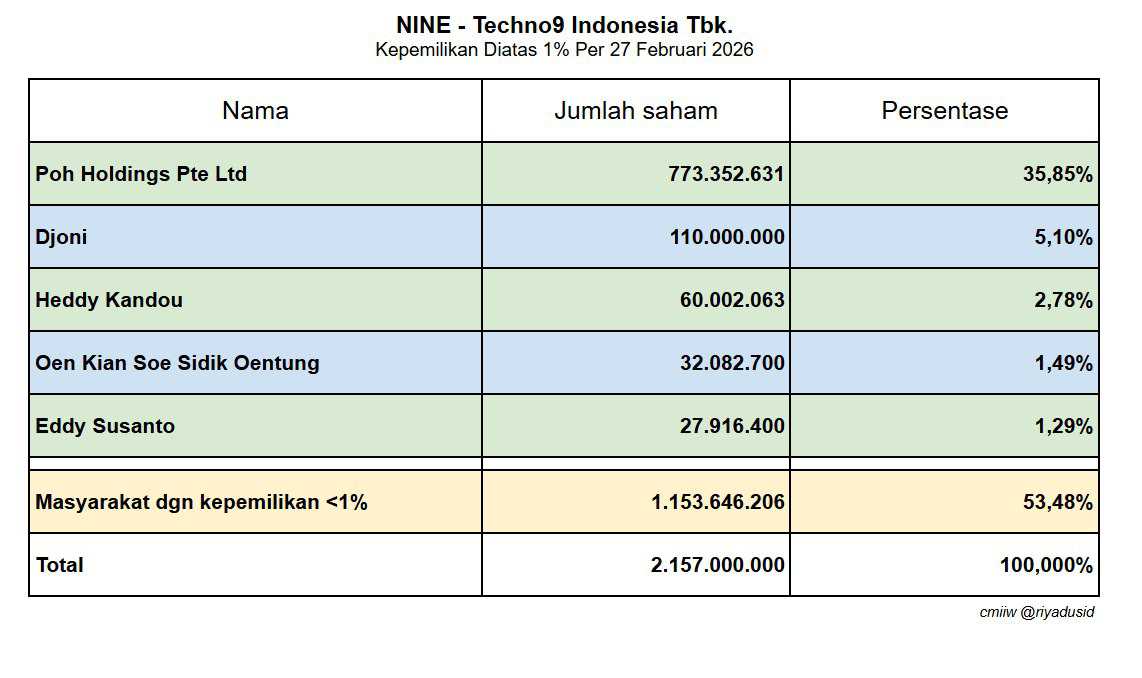 3. Sebelum di buang ke market. Di awal 2025, sebelum menjual saham²nya di NINE, mereka sempat melakukan pembelian saham NINE. Dengan kisaran : Membeli 500.000 + 6.000.000 lembar saham pada April 2025. Bahkan akumulasi itu sempat membuat kepemilikan mencapai lebih dari 15% sebelum kemudian dijual kembali. Tolong koreksi apabila saya salah 🙏. Jadi, aksi akum ini dilakukan di momen Nine akan melakukan HMETD Right Issue dan sempat tertunda akhirnya AOF melakukan profit taking dan distribusi besar²an juga memakai broker KI.