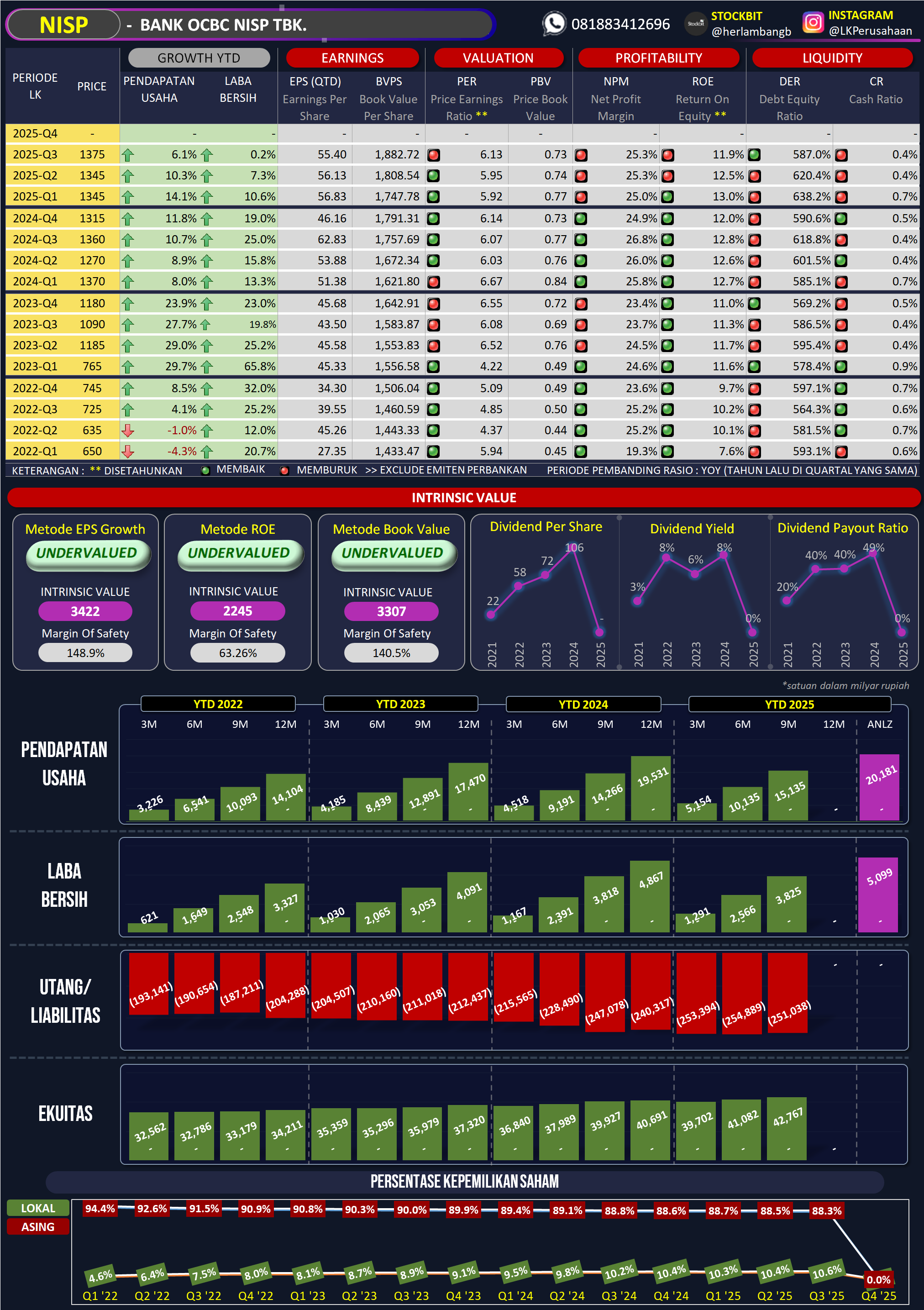 $NISP LK Q3 2025 udah keluar, lumayan mediocre bagi yg tidak mengikuti sepak terjang nisp dari awal tahun lalu.