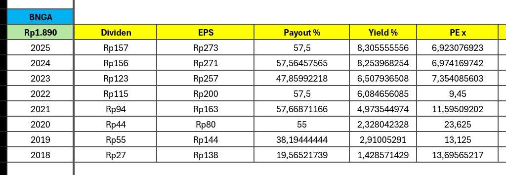 Masa iya deviden yield-nya $BNGA 8,3% an sudah kemahalan? Coba bandingkan dengan $NISP yang cuma 6% an.