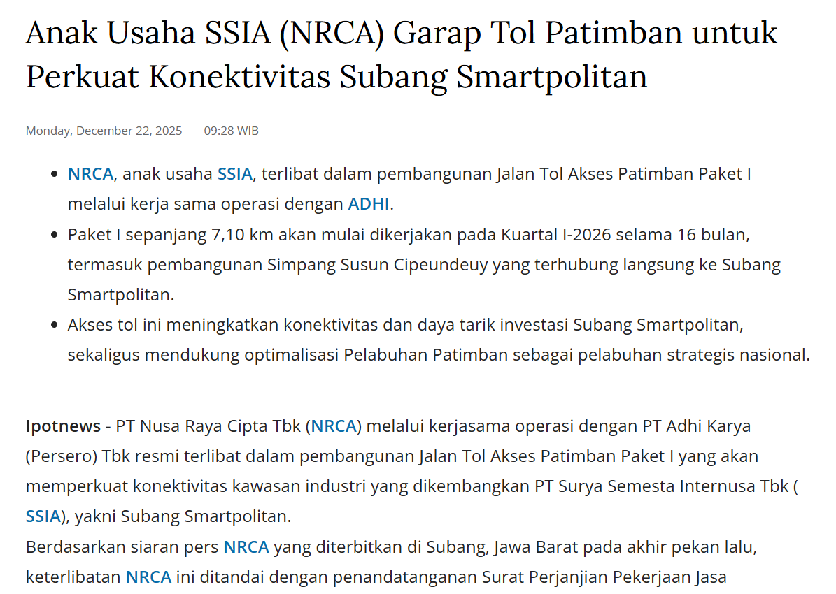 $NRCA jangan sampe sdh berebut barang baru masuk $SSIA 2 jagoan kalo properti dan konstruksi… DYOR