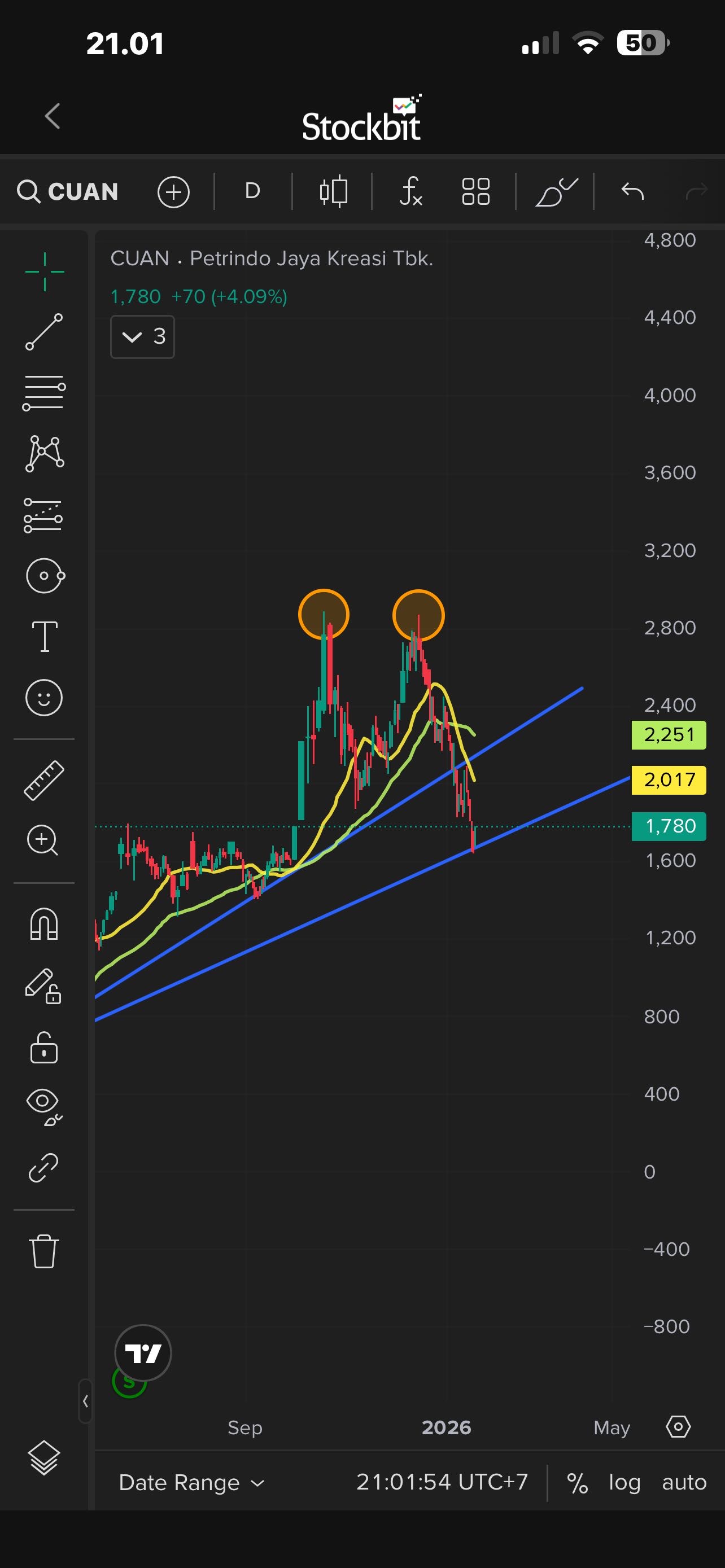 CUAN konfirm double top ya, belum bearish akan tetapi..