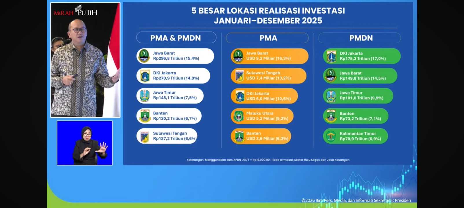 5 besar lokasi realisasi investasi Indonesia Jan-Des 2025