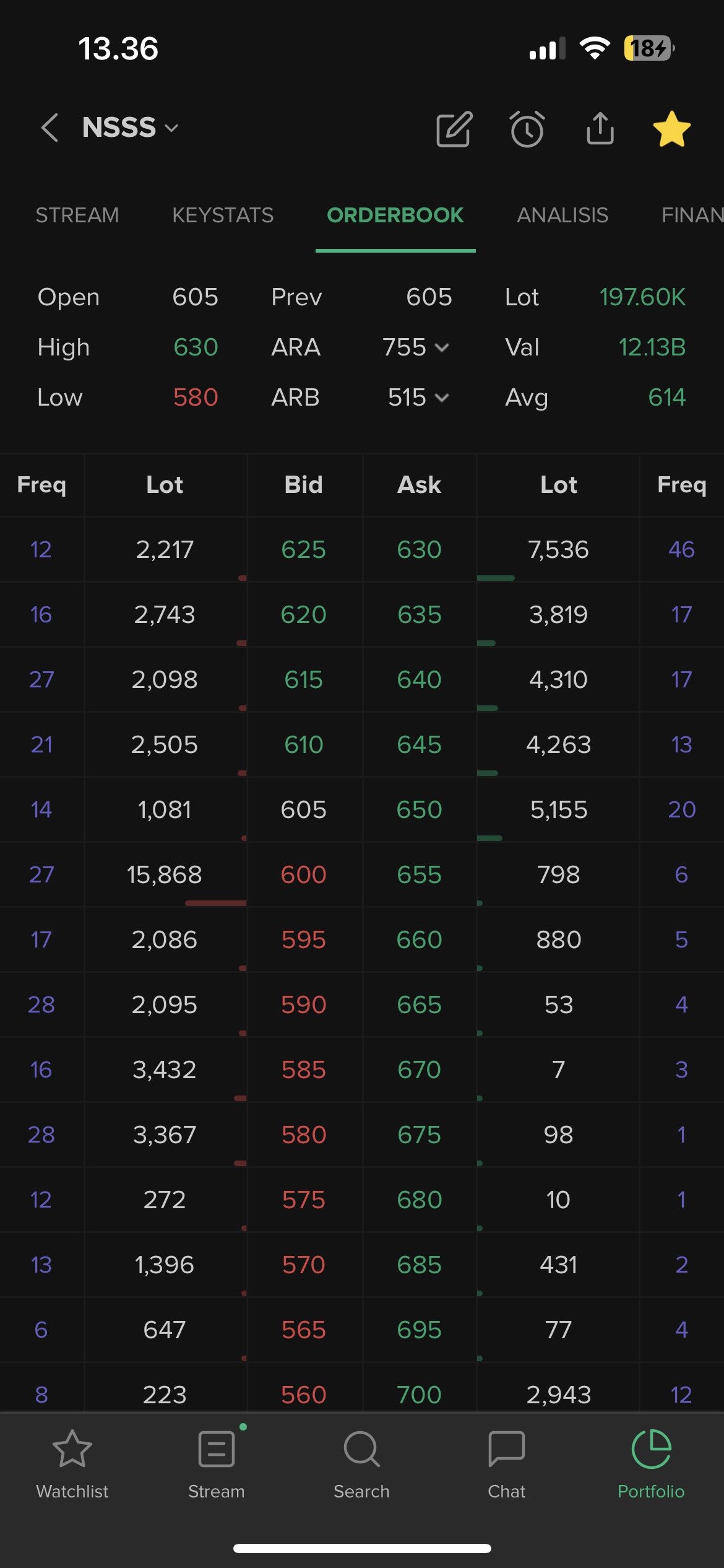 Aduh $NSSS ada yg ngebid 15k lot di harga 600, jangan pada tp kalo bisa duh, biar makin kuat ni harga sahamnya