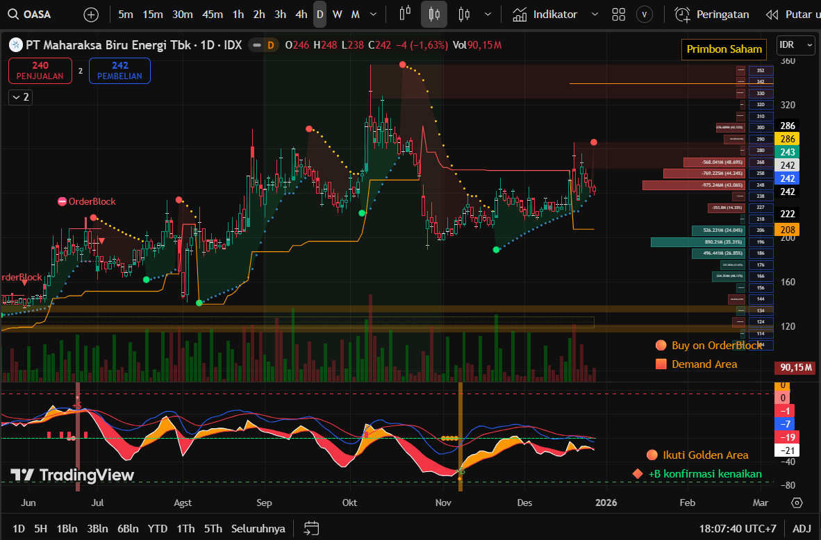 @Rifkihaiqal7 $OASA masih ada distribusi, bukan area beli, demandnya jauh. risk reward rationya ditopang asing, inflownya bagus. Strategi konservatif tunggu di 200-210 sambil menunggu demand baru. Kalau masuk sekarang, siapkan dana buat avg down.