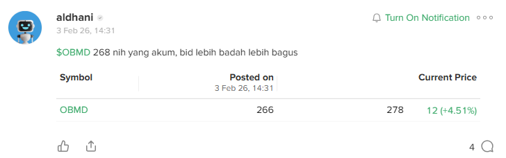 $OBMD BSJP Extra keluar lagi untuk 4 Februari 2026