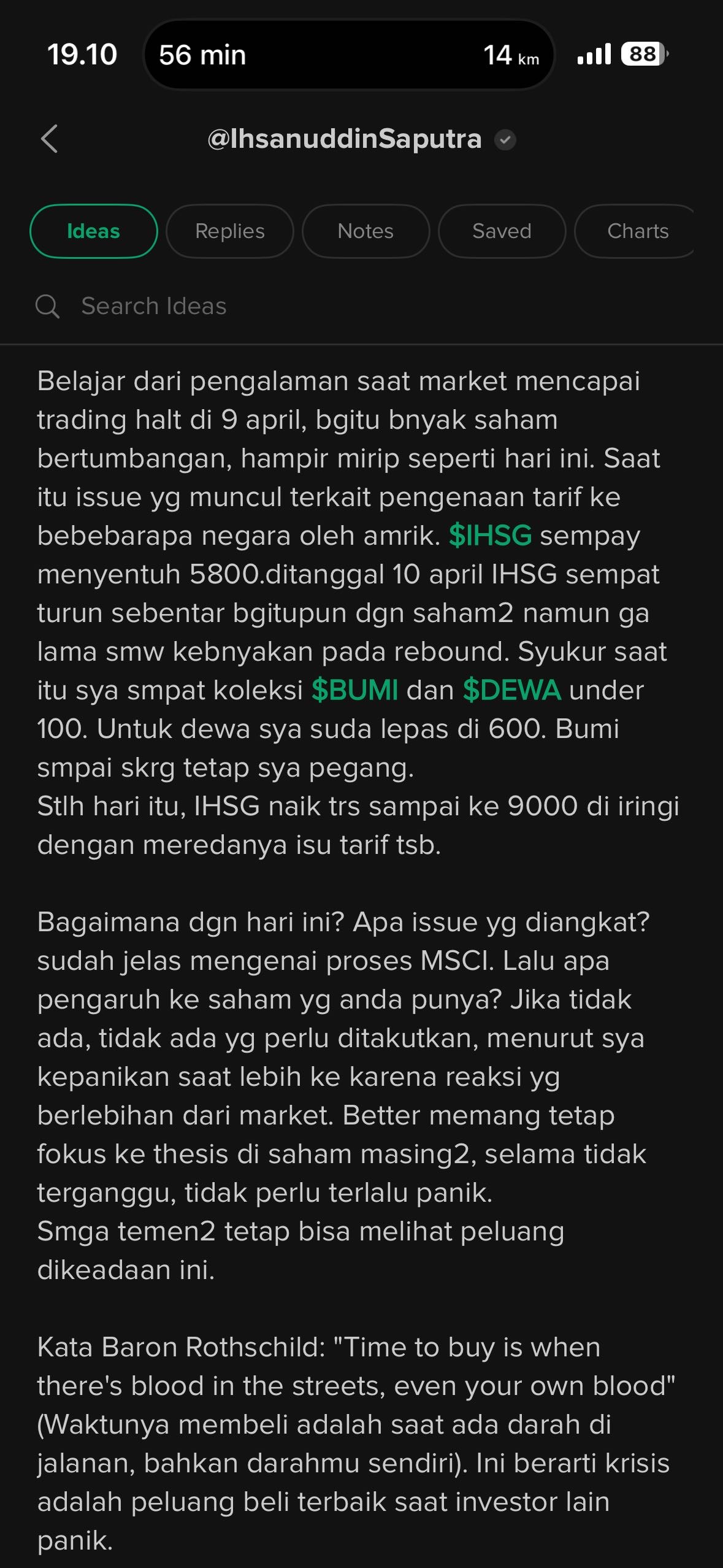 Meneruskan postingan kemaren mengenai pergerakan $IHSG bahwa apa yg terjadi hari ini hampir serupa seperti saat 9-10 april, dimana hari kedua pasca isu, ihsg smpt turun dlu dan kemudian bisa kembali rebound. Pertanyaan nya adalah, sudah serok apa hari ini?