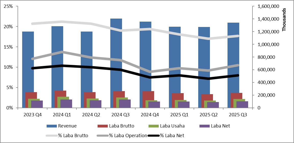Sedikit melegakan (sedikit!), setelah sebelumnya terjadi trend penurunan margin selama 6 Q berurut-turut.