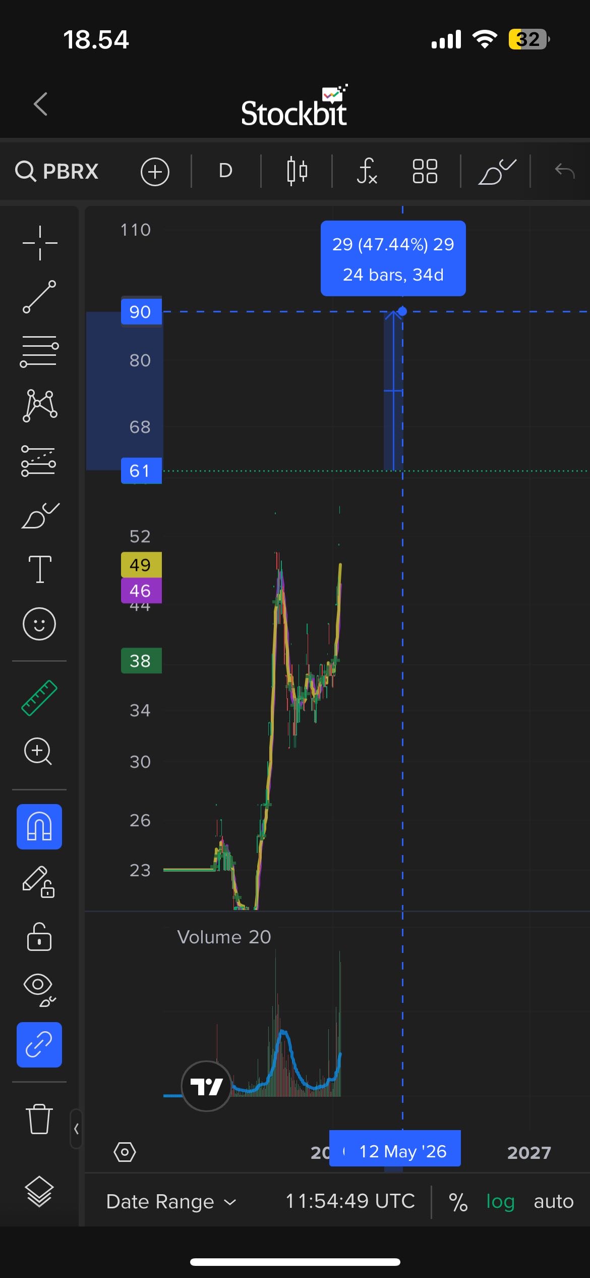 $PBRX udah lama ngincer ini, tapi lama sidewaysnya. sekarang malah susah dapet barangnya, kurang sabar andai sabar nunggu pas harga 37 udah berani masuk ππ