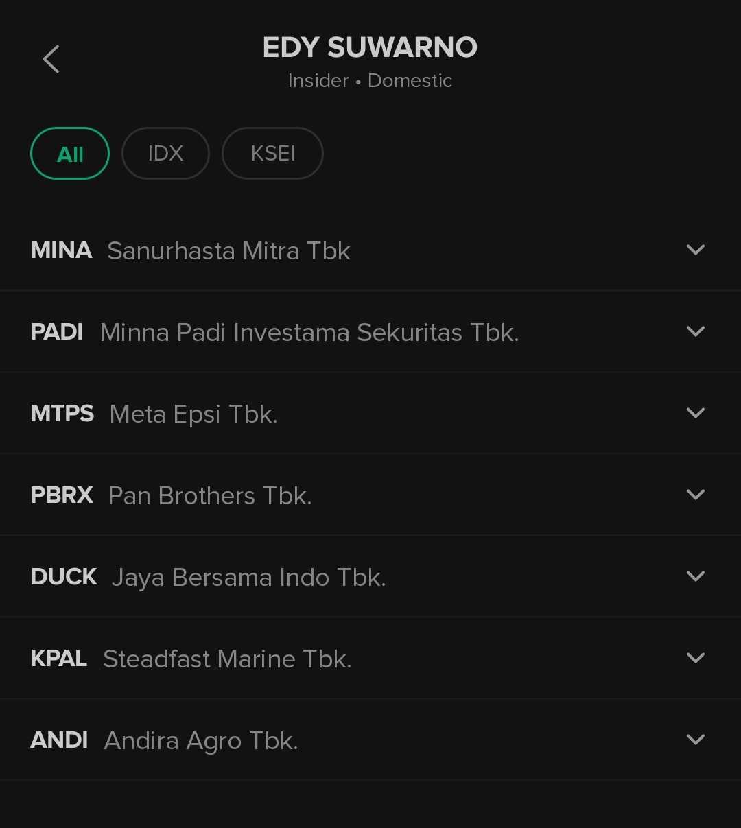si Edy itu maen nya di MINA sebelum HH jadi pengendali utama disini, ada juga di DUCK, $PBRX, $ANDI