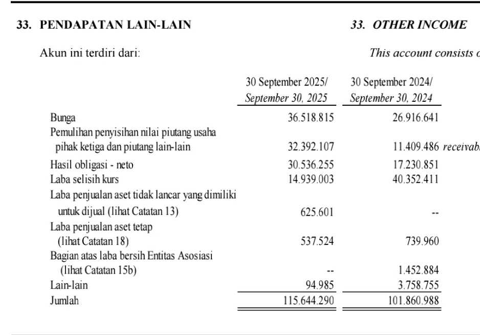 Oh ini toh membuat laba nya to the Moon.. Pemulihan piutang yang hampir 32M-an ..