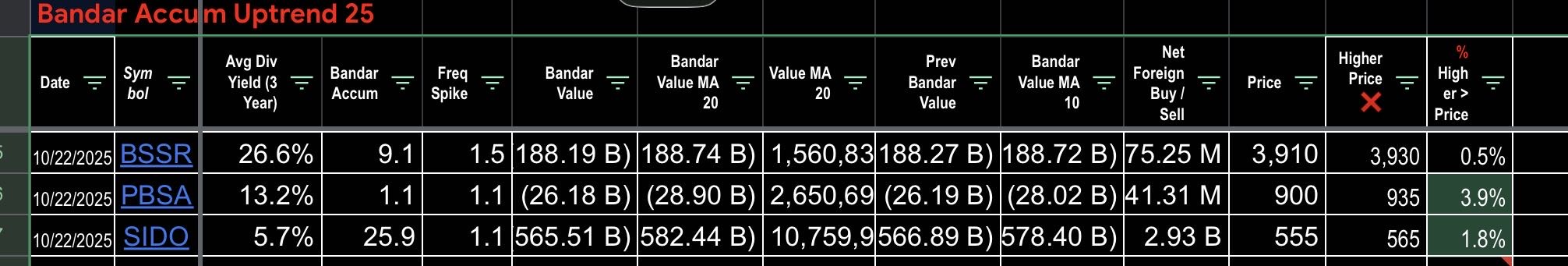 Kita tunggu % Higher to Price sewaktu closing nanti jam 16.00 untuk cross-check hasilnya yang selama ini fitur screener StockBit tidak mengecewakan.