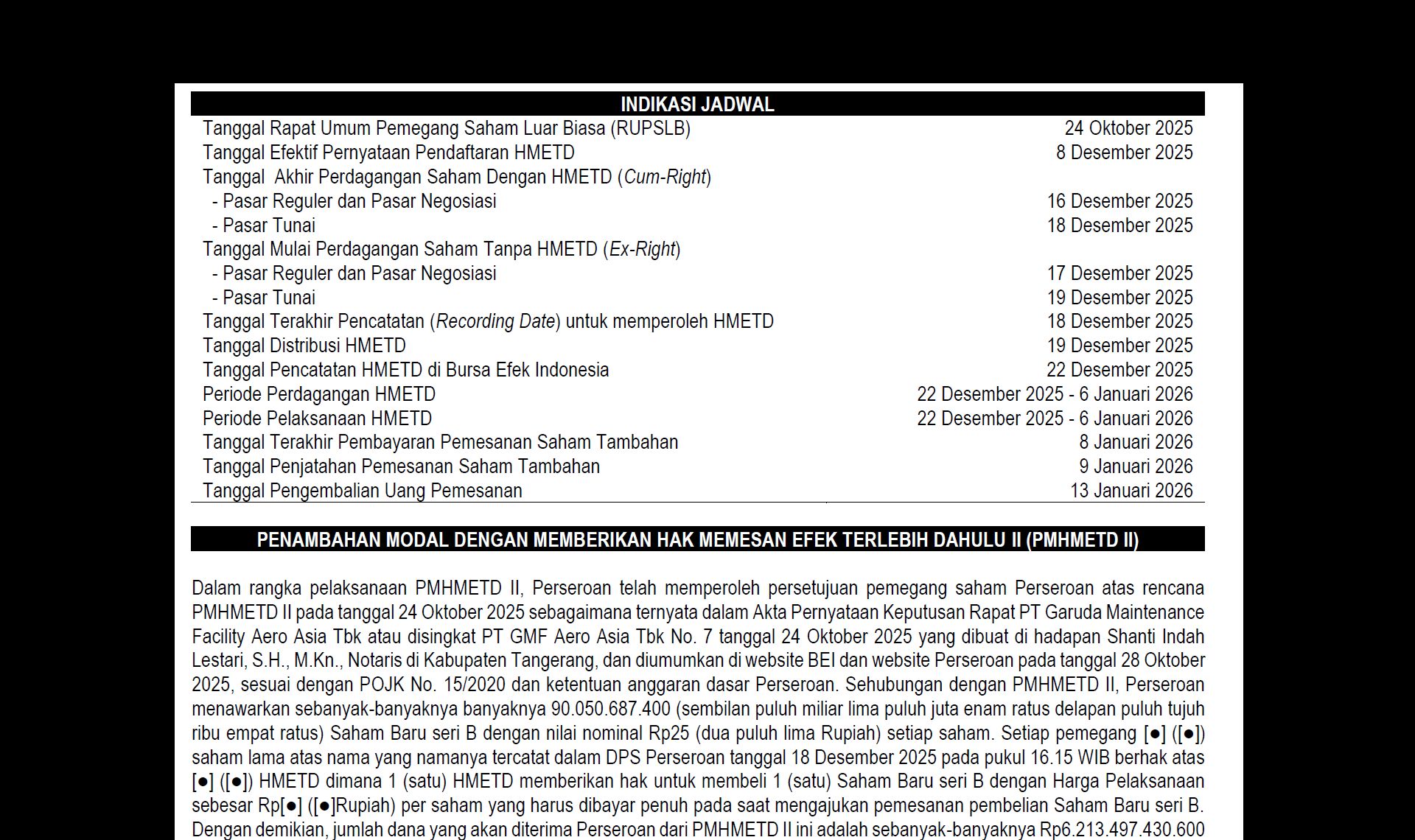 - Cum Right 16 Des, Ex Right 17 Des 2025