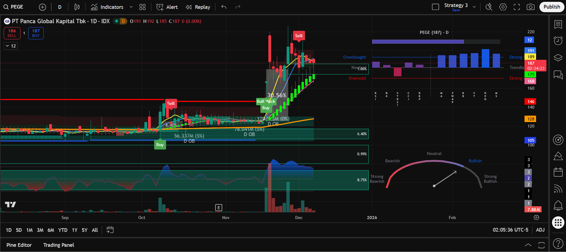 $PEGE bearish 185 hit pd T+3. Penurunan -8.42% dari harga awal 202. Ternyata tdk semudah itu cuan di PEGE, Ferguso.