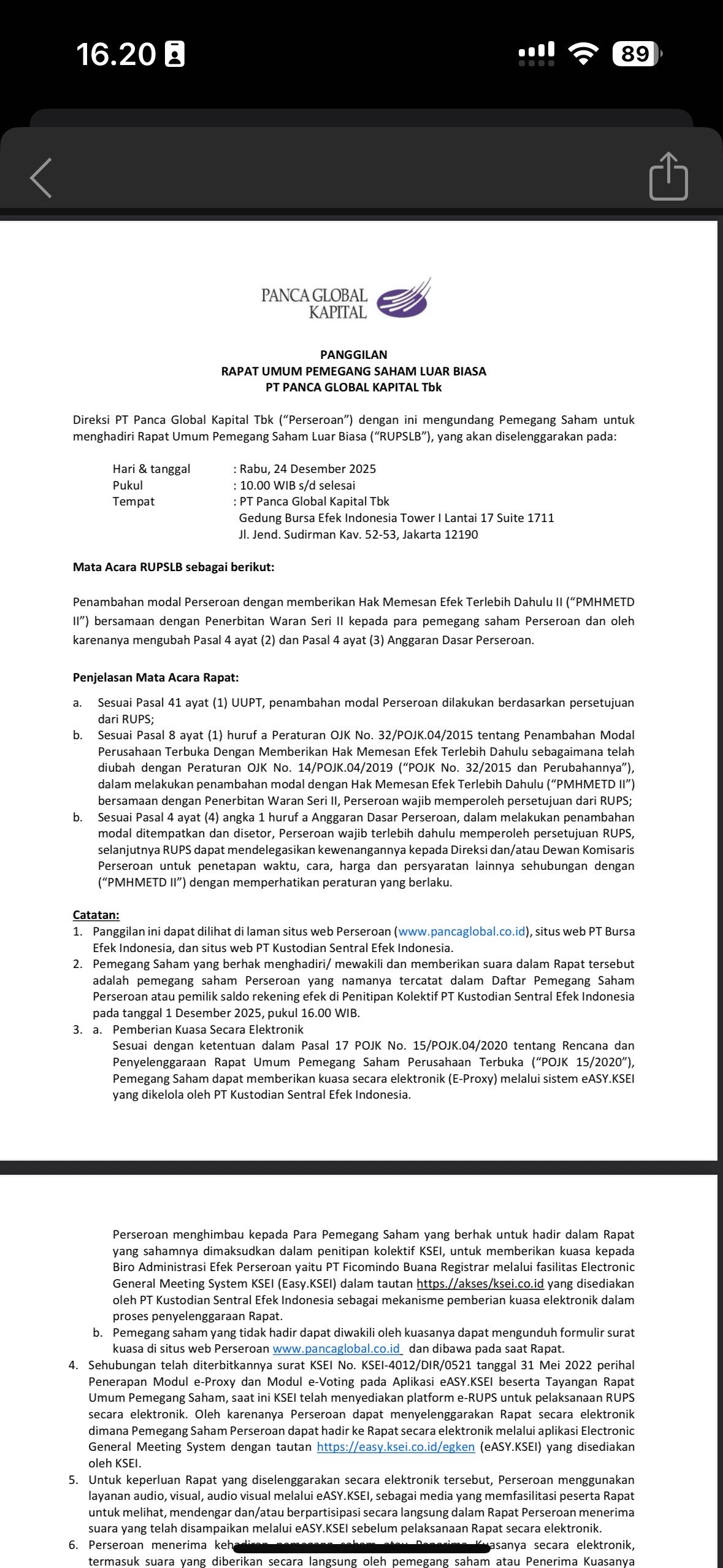 $PEGE udah jelas RUPSLB 24 desember nanti akan bahas tentang Right Issue, dan RI kali ini termasuk salah satu RI Positif dan Jumbo selain $INET, tidak perlu saya jelaskan apa yang harus kalian lakukan sekarang.