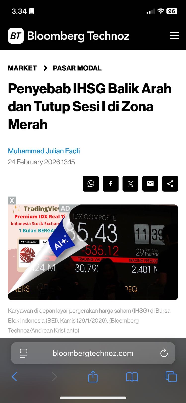 $ELSA Mengutip Phillip Sekuritas, $IHSG tersengat sentimen Bursa Saham Wall Street semalam yang ditutup turun tajam lebih dari 1% seiringan dengan naiknya harga emas dan volatilitas pasar, di tengah ketidakpastian yang berkelanjutan seputar kebijakan tarif perdagangan Presiden Donald Trump dan kecemasan yang semakin besar tentang gangguan Kecerdasan Buatan atau Artificial Intelligence (AI) berbagai industri.