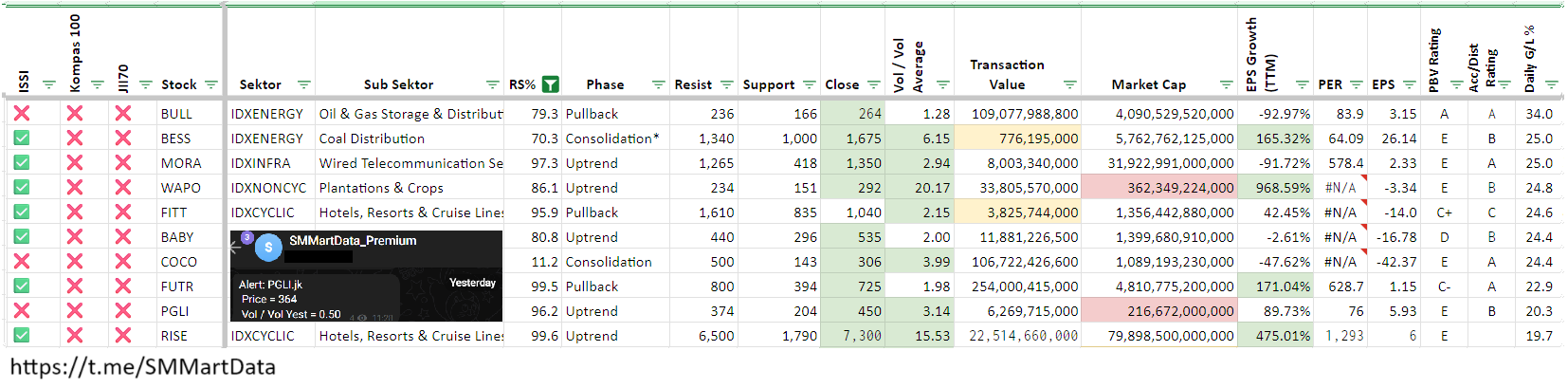 * Notes: Data RS%, EPS Growth bisa diakses lewat SMMartData Telegram Bot.