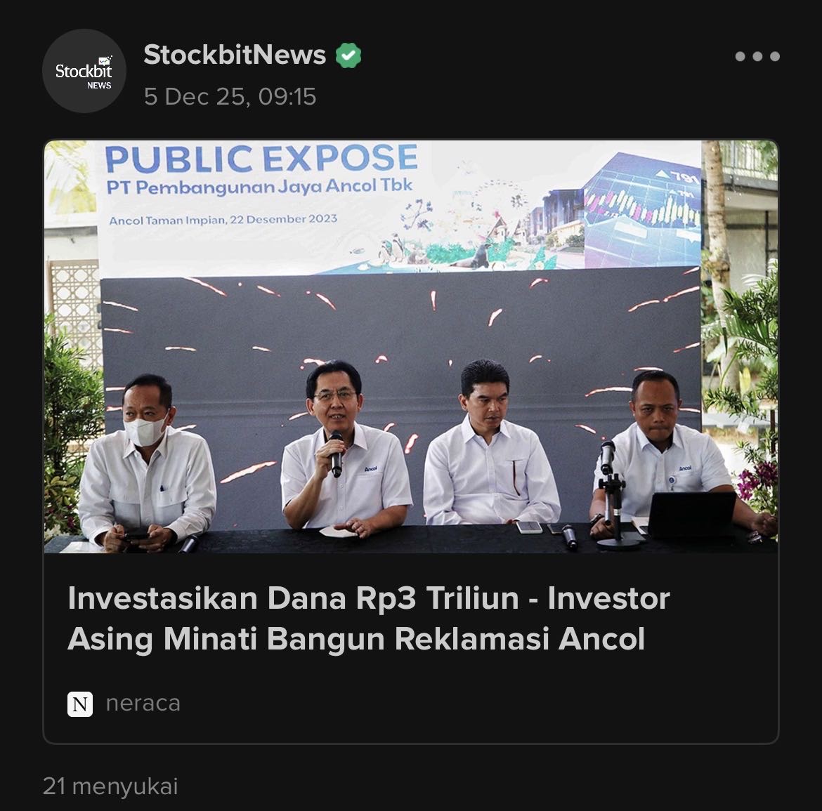 khusus utk $PJAA news udh dpt bakalan gede in ancol inti nya itu d thn dpn, teknikalnya saya pakai fibo utk tentukan titik entry dan yg terakhir saya liat lonjakan volume.