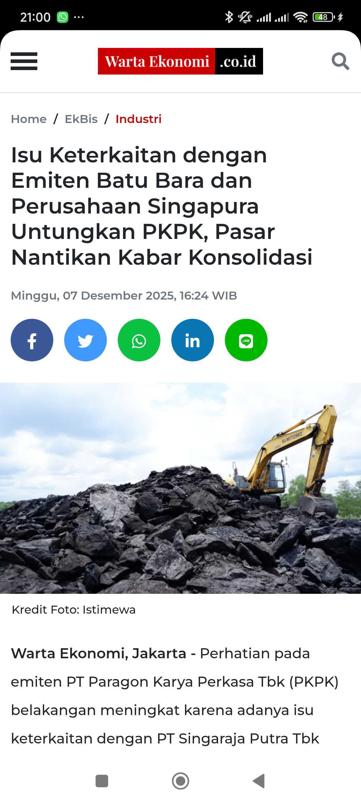 "Isu integrasi antara PKPK dan SINI, jika terbukti, dapat membawa nilai tambah yang signifikan bagi kedua emiten, terutama dari sisi efisiensi biaya produksi dan optimalisasi cadangan batubara," jelas Arif.