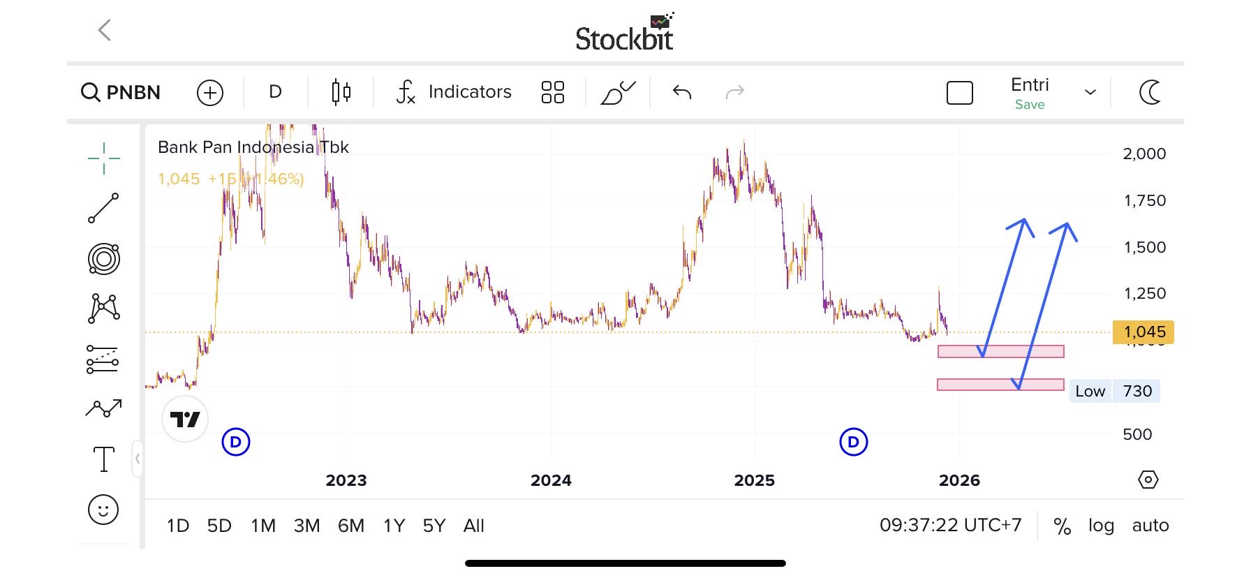 Mengingat akumulasi kuat oleh big player di harga saat ini dan valuasi PBV yang sangat murah, PNBN memiliki potensi rebound yang signifikan.