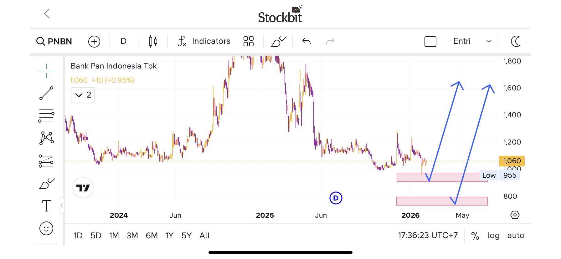 - Selama PNBN bertahan di atas support kunci 980, peluang swing ke area 1.100–1.160 masih terbuka.