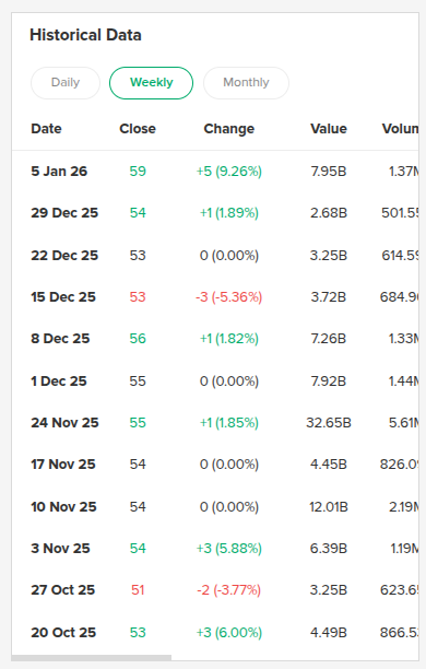 bullish $PNBS 61 hit dalam T+5. Kenaikan +15.09% dari harga awal 53. Congratulations untuk follower.