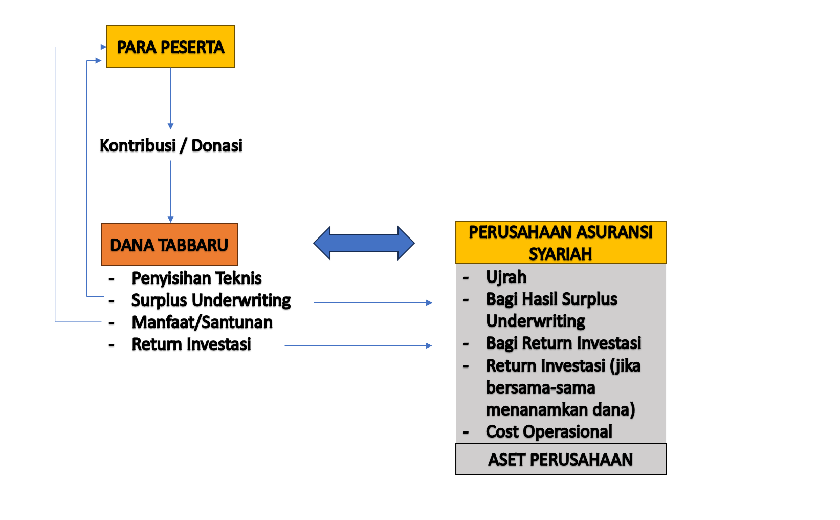 Para peserta asuransi, berkomitmen untuk mengumpulkan dana “kontribusi” ke dalam suatu kumpulan dana Kebajikan atau dana tabarru. Dana Tabarru ini dikelola oleh Perusahaan Asuransi Syariah dan telah melakukan analisa untuk menentukan tarif yang dianggap sesuai dengan risiko yang ingin dishare. Analisa ini ada perhitungannya baik dari sisi market, statistik kejadian dll. Analisa ini juga termasuk ke berapa jumlah minimal peserta yang ikut serta dalam kontribusi dana tabarru.