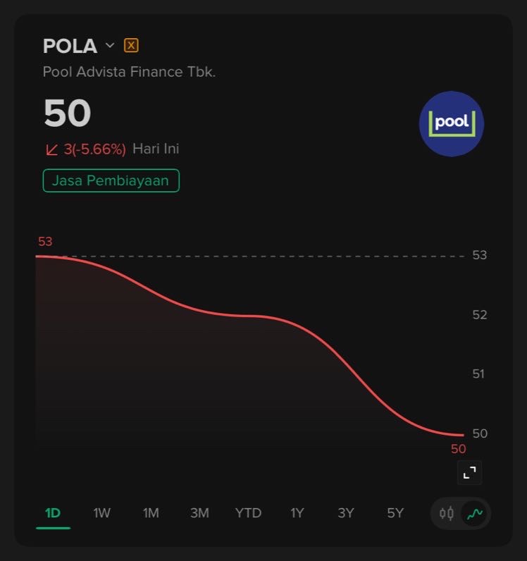 PT. Pool Advista Finance Tbk (POLA) bergerak di bidang pembiayaan konvensional yang meliputi pembiayaan multiguna, pembiayaan investasi, pembiayaan modal kerja, dan pembiayaan syariah. Perusahaan merupakan anak usaha dari PT. Pool Advista Indonesia Tbk (POOL).