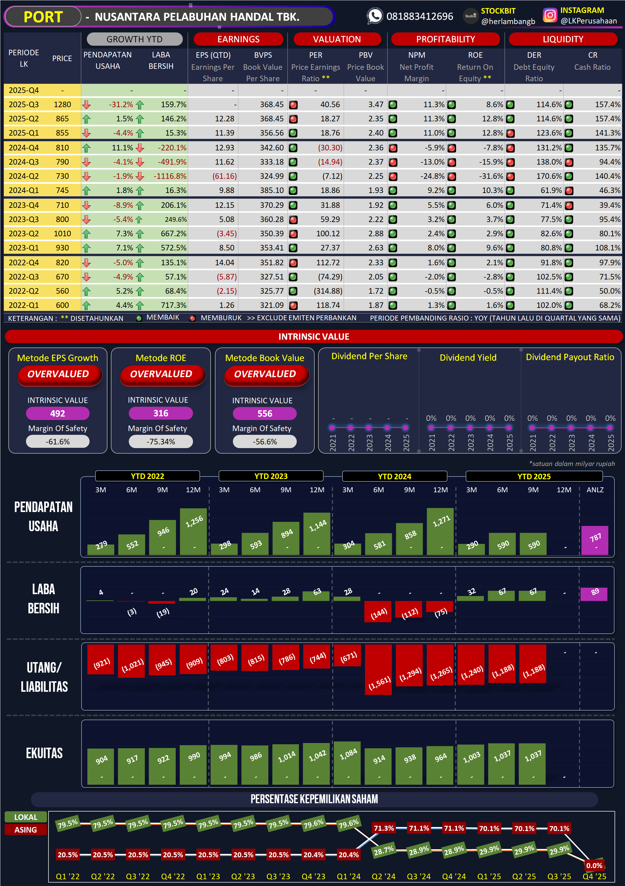 Optimisme Sektor Logistik & Pelabuhan Manajemen PORT optimistis terhadap prospek jangka panjang seiring penguatan permintaan di sektor pelabuhan dan logistik (didukung oleh pemulihan ekonomi domestik dan peningkatan ekspor). Positif Jangka Panjang: Menciptakan ekspektasi pertumbuhan pendapatan dan laba yang berkelanjutan di kuartal berikutnya, menjadikannya prospek growth stock di sektornya.