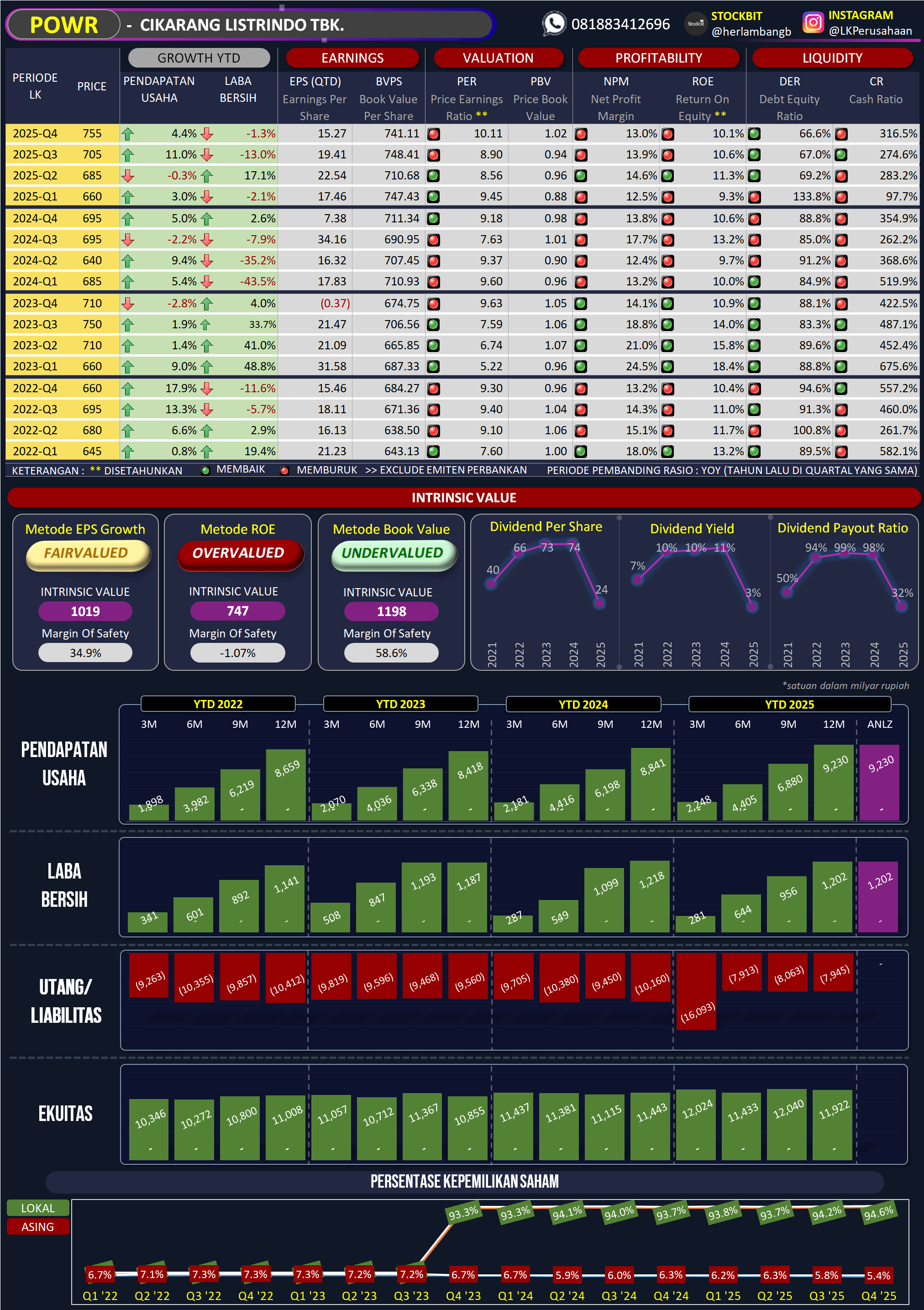 POWR menunjukkan performa yang Solid namun Stagnan di sisi top-line, dengan tekanan pada bottom-line akibat biaya operasional. Namun, perbaikan struktur modal melalui pemangkasan utang secara masif adalah nilai tambah yang luar biasa bagi stabilitas jangka panjang.