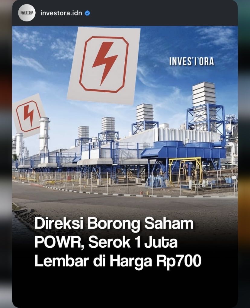 Komisaris Cikarang Listrindo ($POWR), Iwan Putra Brasali, membeli ~2,9 juta saham POWR dengan harga rata–rata 695 rupiah per lembar atau senilai total ~2 miliar rupiah pada 11 Desember 2025. Setelah transaksi ini, porsi kepemilikan langsung Iwan Putra Brasali di POWR naik dari 0,0081% menjadi 0,0266%.