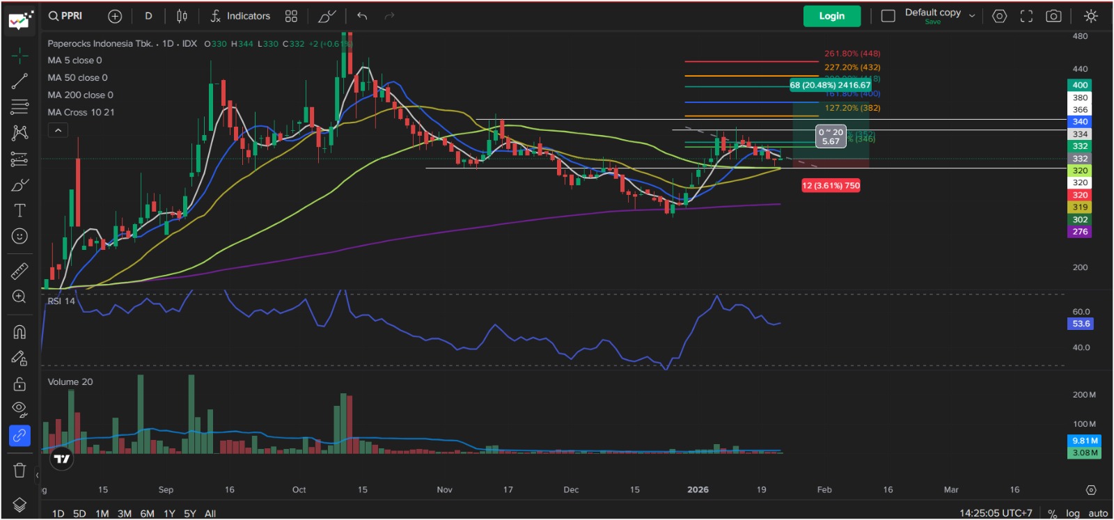 $PPRI Selama ga break 320 (support,Ma 50, Ma 21) masih Oke . last hope di 320 kalau break bisa ke MA 200 (275)